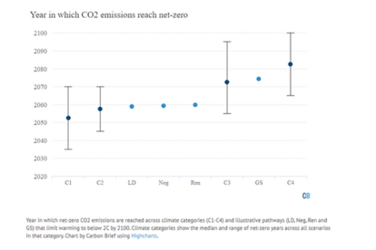 Year in which CO2 emissions reach net-zero